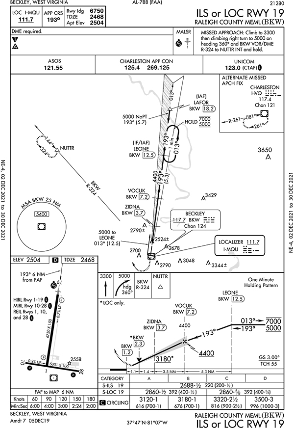 3. Without ATC, you’re on your own to get established. The sure thing is starting from the Beckley VOR (BKW). Every approach has a feeder starting from that VOR with a published course and altitude. Or you could use the MSA as mentioned above and just get to the fix at that altitude.