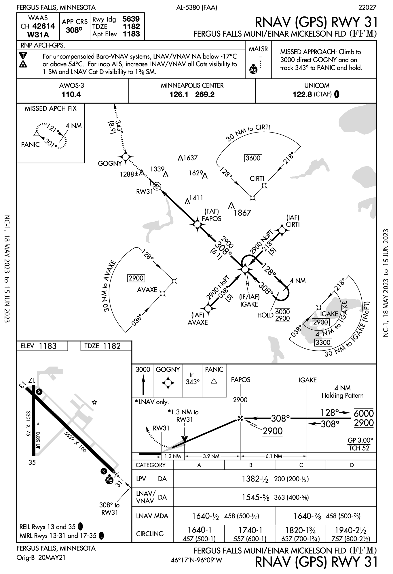 It must be Monday. The first glitch of the day drops in before the second cup of coffee: The flight plan, filed on Saturday, needs amending. While it’s marginal VFR in Ainsworth, Nebraska, the destination, Brainerd, Minnesota, is socked in along with most of the state. The three-hour direct flight in your 140-HP low-wing will also leave less-than-acceptable reserves given the weather, so plan on landing somewhere on the way with 1.5 hours remaining. Instead of diverting off-route to a bigger city like Fargo, you’ll stop right along the way. It’s just 2.5 hours to Fergus Falls, 84 miles west of Brainerd. Einar Mickelson Field (named after a local WWII pilot) has the services you seek along with ILS and RNAV approaches to multiple runways.