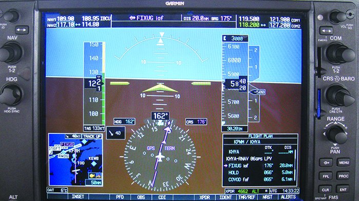 The glass-panel scan should include your track. Track is your actual path over the ground and is the end goal of flying a specific heading. You’re not really trying to keep a heading of 112 on the ILS to Runway 11; you’re flying a heading to achieve a track of 112 over the ground and keep you centered on the localizer. The point of using track is that you may be perfectly centered with the needles, but if your track is 115 instead of 112, you won’t stay on course. Track lets you correct preemptively, before the CDI needle even begins to move.